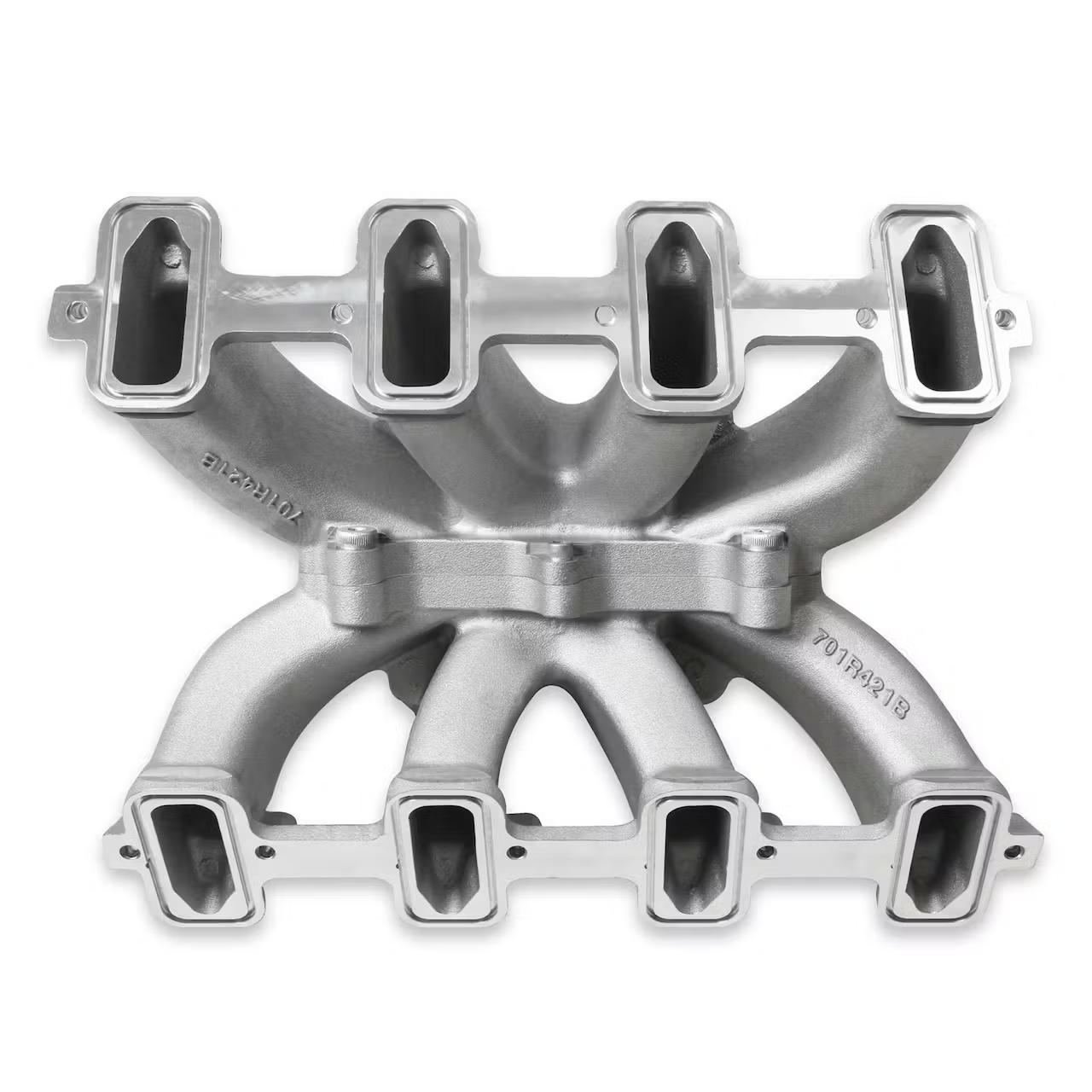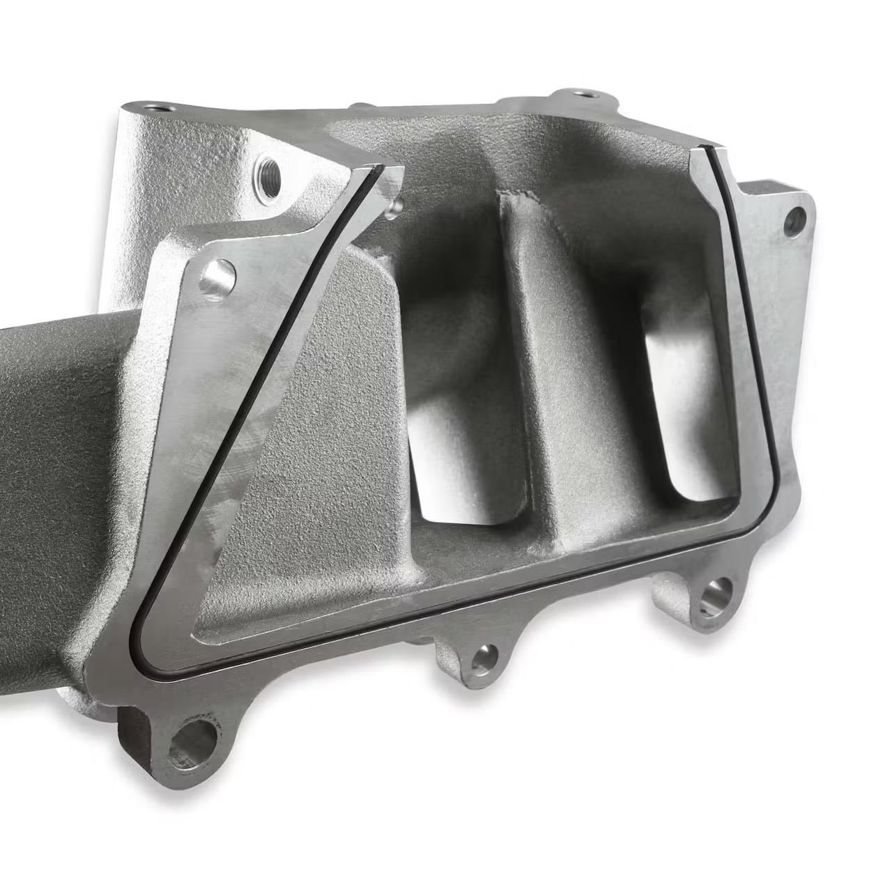 The new Holley Single-Plane Race intake manifold were designed with performance in mind. They feature a race bred, two piece split feature that was previously only found on the most expensive race intakes. The manifold will fit GM LS Gen III engines with cathedral port heads and are intended for 4150 style square bore flanged carburetors or throttle body EFI.The LS Race single-plane intake manifold was designed for hi-performance/racing engine applications, 5.3 to 6.2+ liter displacement, and maximum engine speeds of 6000-7000 rpm, depending on the engine combination. This single-plane design provides optimal performance across the RPM spectrum while providing maximum performance up to 7000 rpm.The Holley LS Race manifold incorporates a split feature, which allows disassembly of the intake for direct access to internal plenum and port surfaces, making custom porting and matching a snap. With shoulder bolt locators and O-ring seal, reassembly is simple and precise.Technical Data:? A-B Height – 7.32″ (0° carb flange angle)? Port Size– 3.28″ Height x 1.10″ Wide? Carburetor Flange – Standard 4150 for up to 1-3/4″ diameter throttle bores? As-Cast Runner Cross-Sectional Area – 3.5 in² at the runner entry tapered to 2.9 in² at the flange exit
