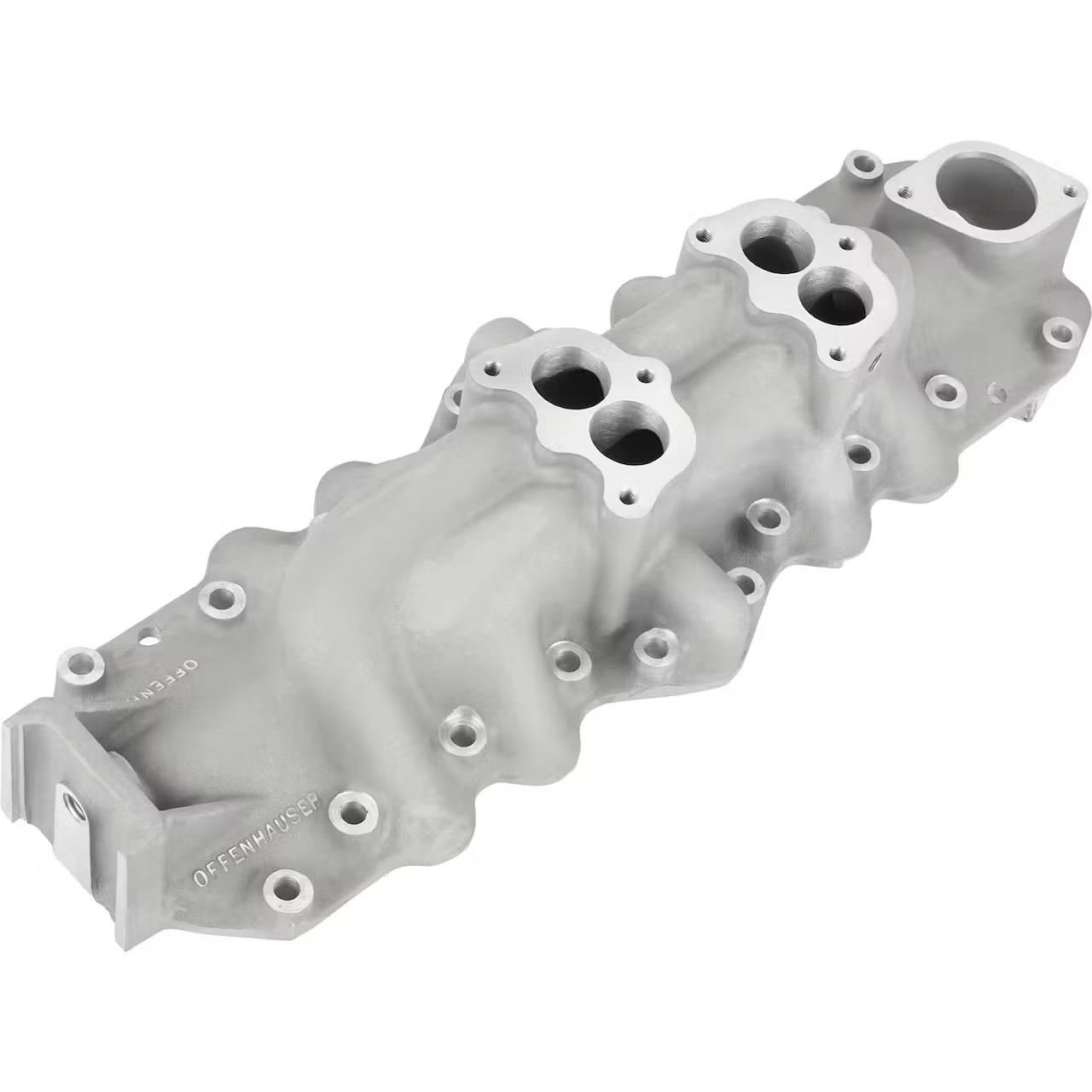 Said to be its most popular flathead intake, Offenhauser’s 2×2 Regular intake has closely spaced carbs that will clear the stock generator. The Offy regular dual intake accepts two 3-bolt carbs. A great addition to a street-oriented engine. Has 4-3/4″ carb centers.