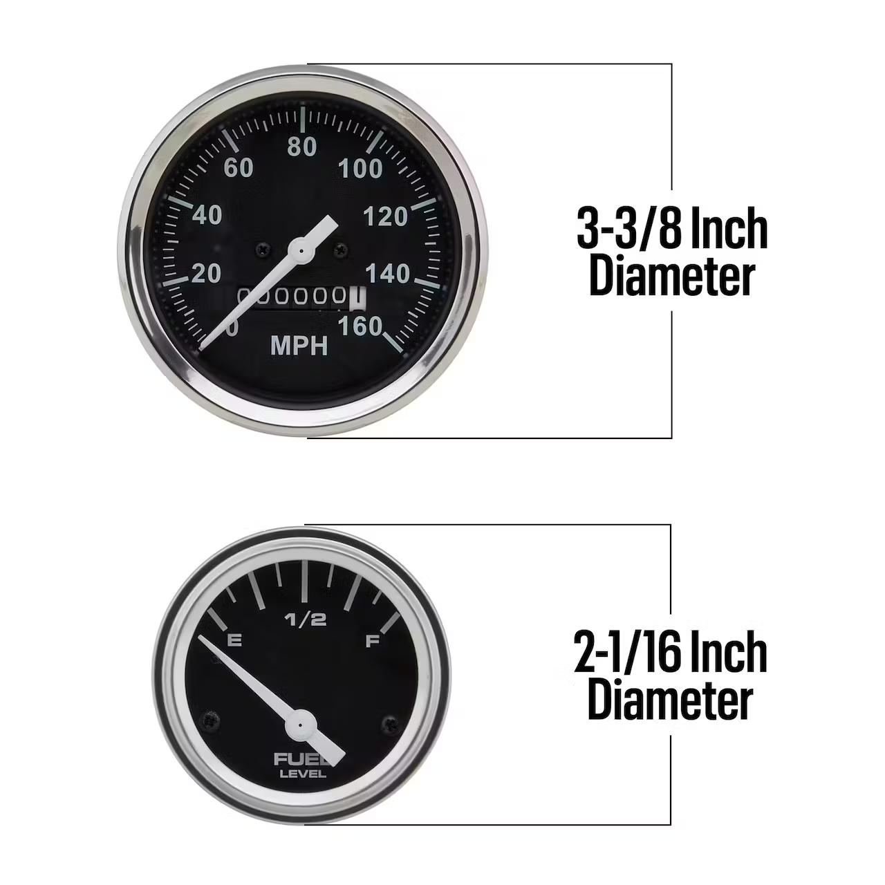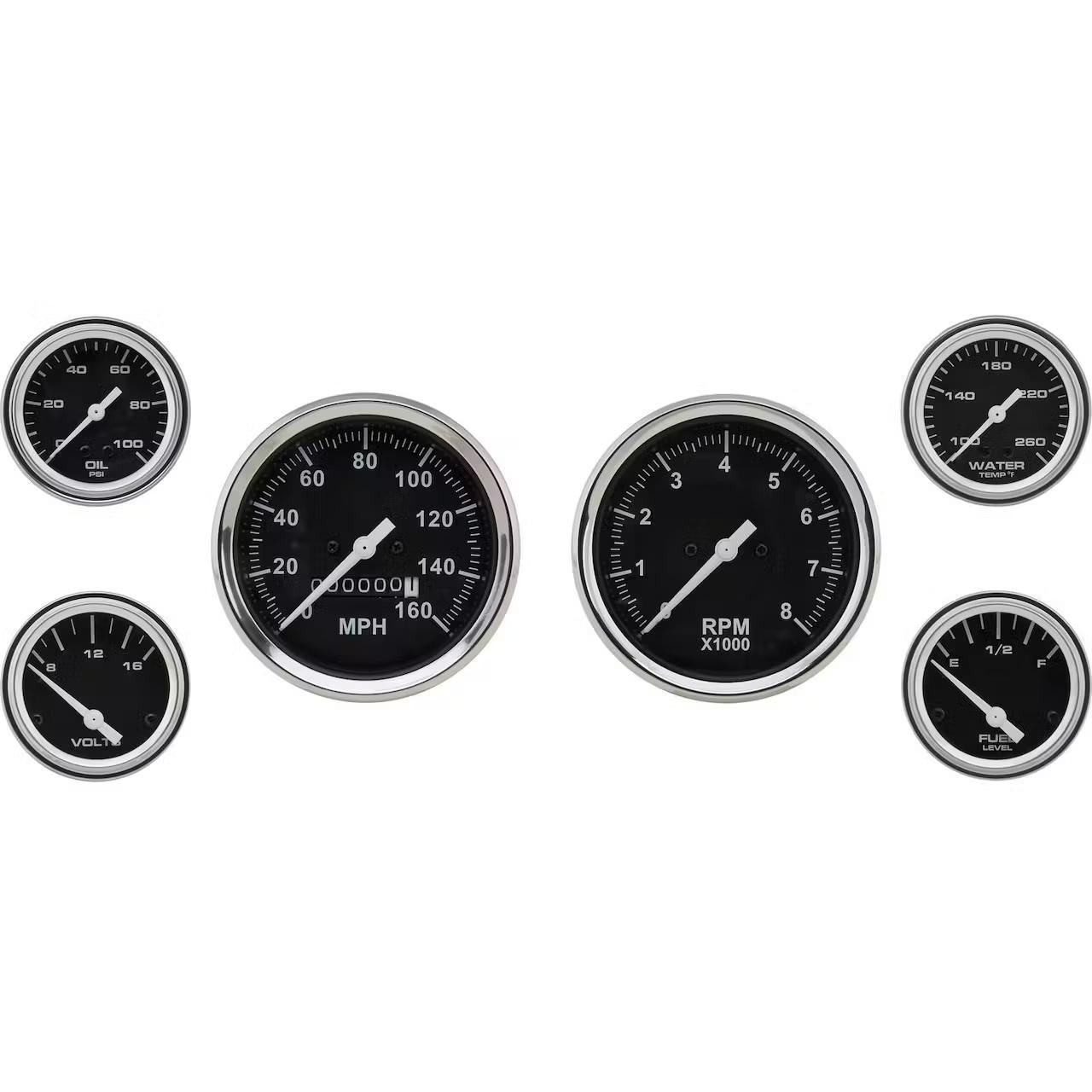 Speedway 6-Gauge Set, Black Face, 3-3/8, Mechanical
